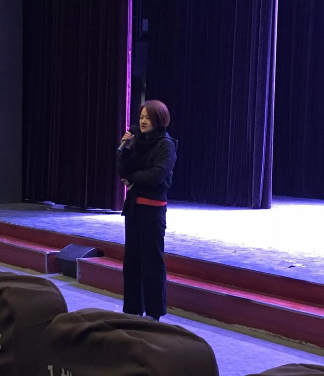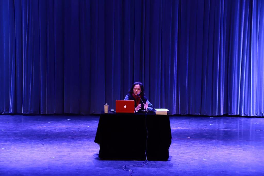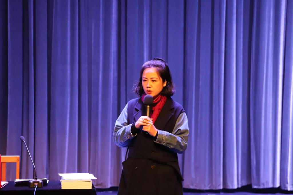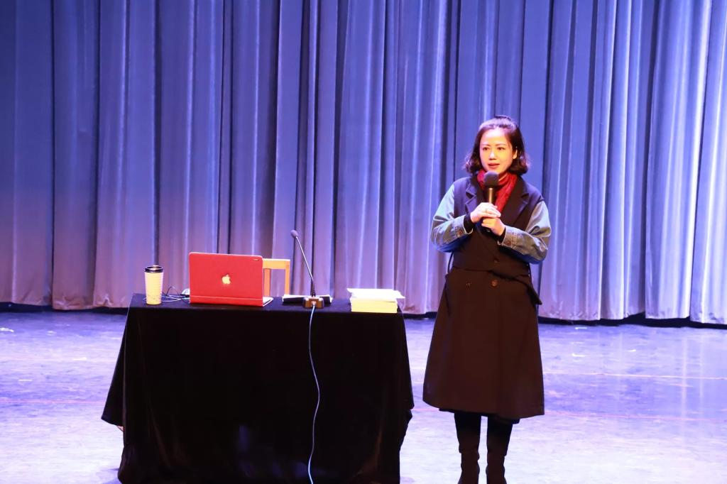 李钦君老师以《单人剧表演艺术漫谈》为题,向学生们系统的讲解了“单人剧”这一舞台艺术形式,深入浅出,既有理论讲解,又有实践案例,中间还穿插着与老师、同学们的互动,讲座既吸引人又让同学们获益匪浅。