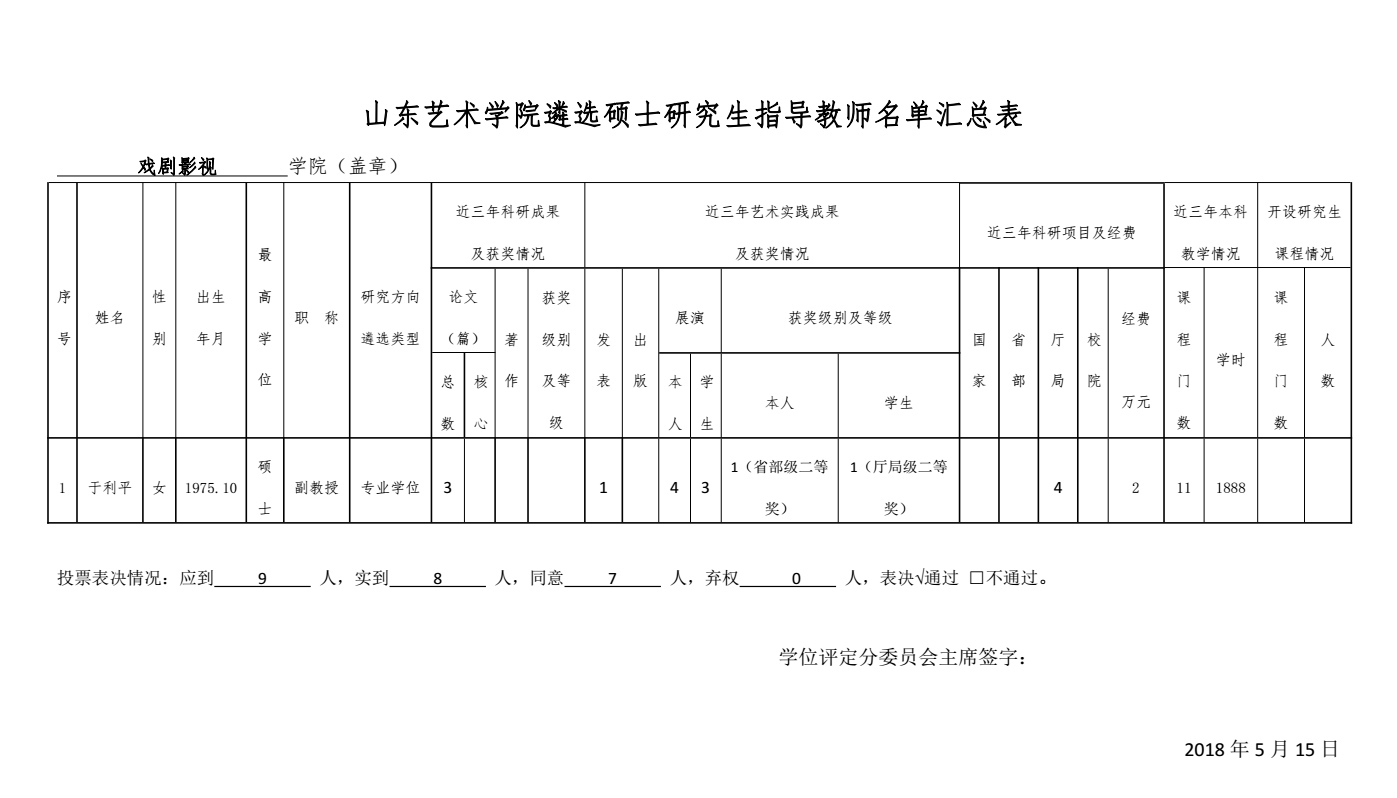 山东艺术学院遴选硕士研究生指导教师名单汇总表