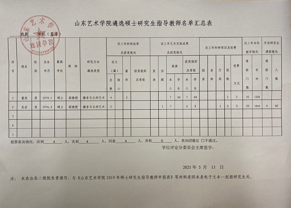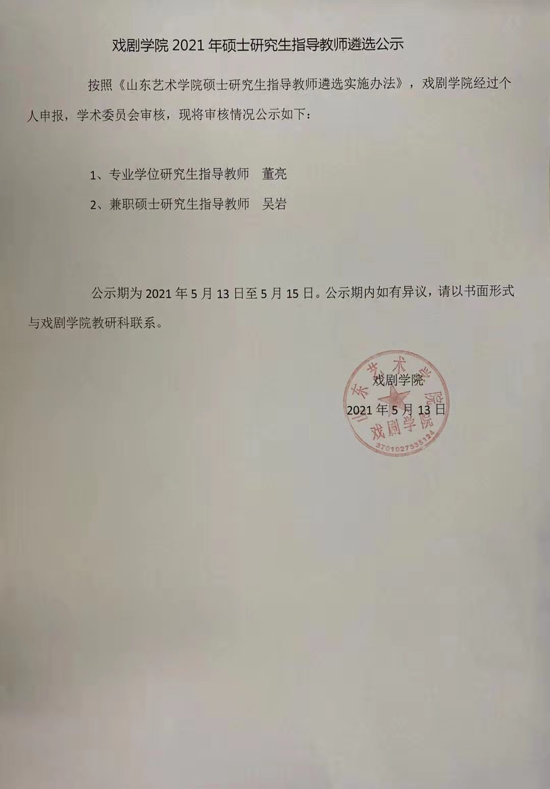 山东艺术学院戏剧学院2021年硕士研究生指导教师遴选公示
