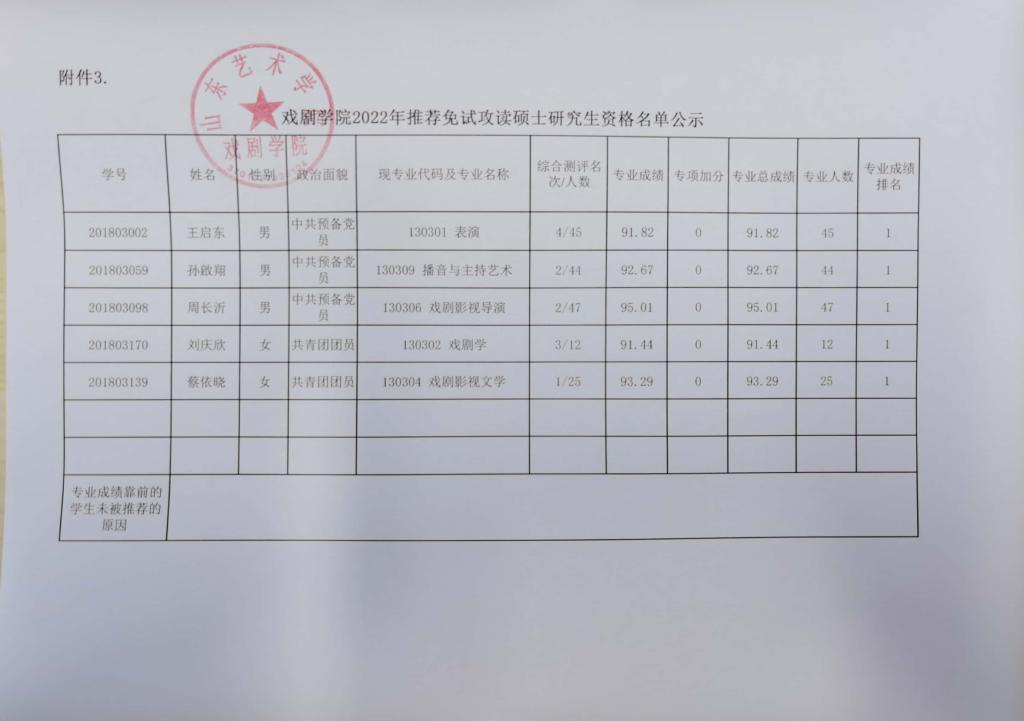 戏剧学院2022年推荐免试攻读硕士研究生资格名单公示