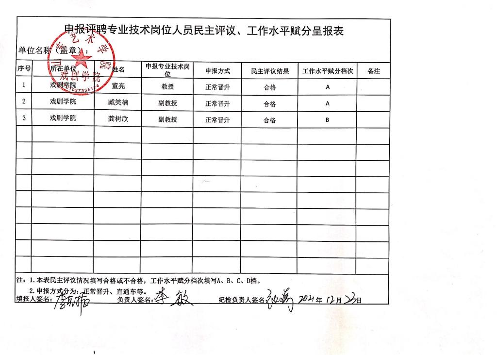 戏剧学院申报专任教师高级岗位总成绩公示情况汇总