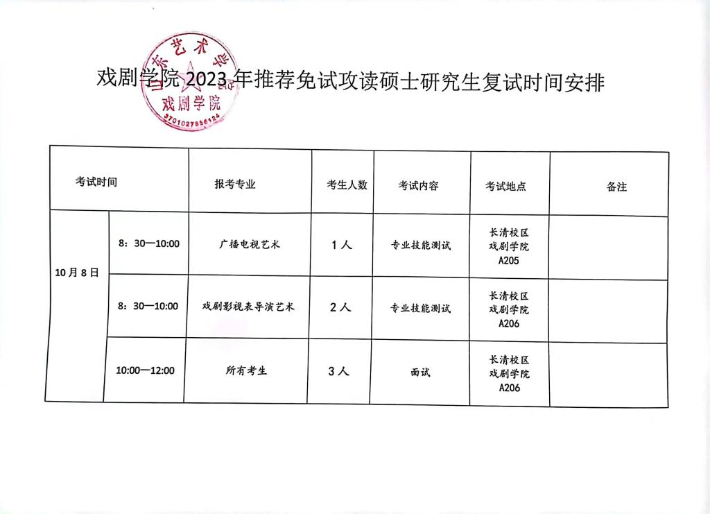 戏剧学院2023年推荐免试攻读硕士研究生复试时间安排