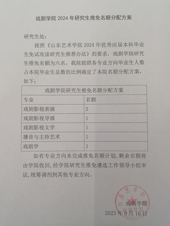 戏剧学院2024年研究生推免遴选工作专业成绩计算办法