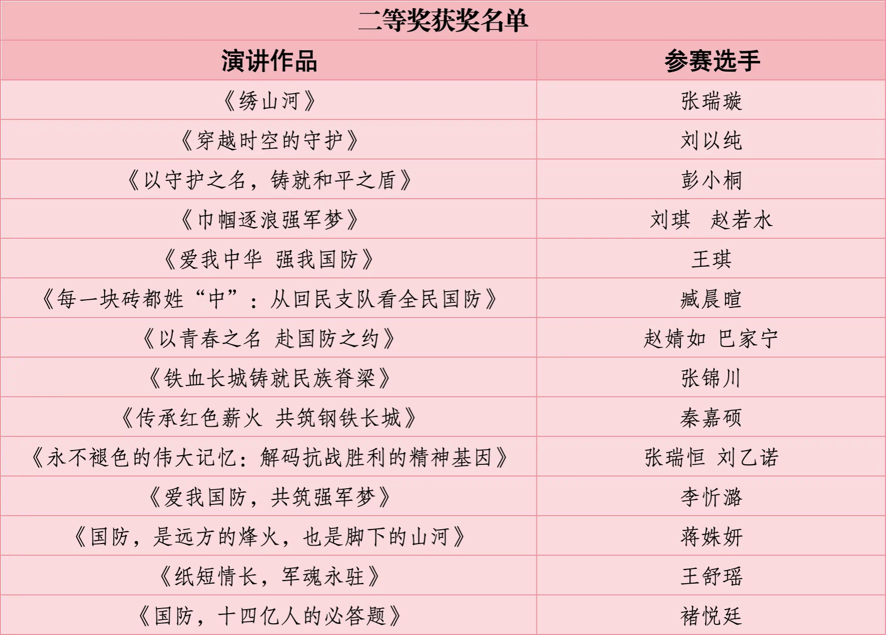 本次“爱我国防”主题演讲比赛的成功举办,是我院贯彻落实立德树人根本任务、深化新时代全民国防教育的重要载体和生动实践。比赛有效激发了广大青年学子的爱国热情、忧患意识和国防担当,为培养担当民族复兴大任、矢志强国强军事业的时代新人注入了强劲的精神动力。