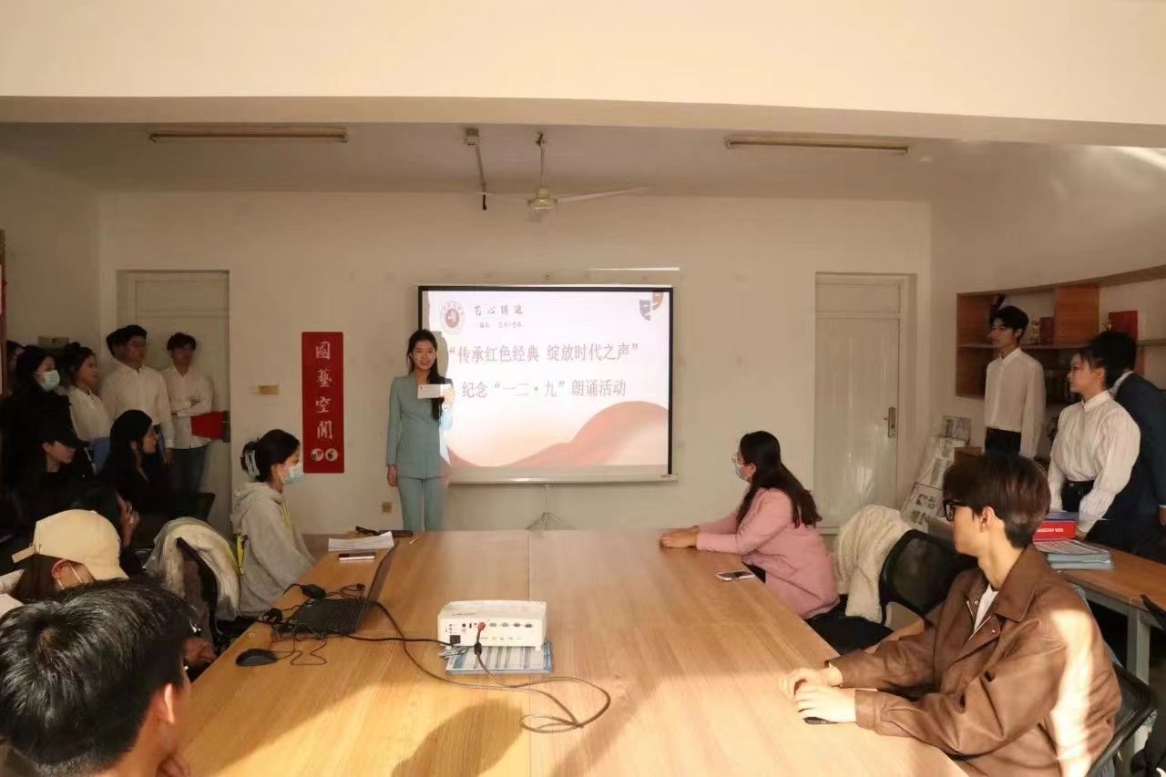 为深入贯彻落实习近平总书记关于青年工作的重要思想,纪念“一二·九”运动88周年,进一步弘扬时代新风,传承民族精神,12月8日,戏剧学院在国·艺工作站开展“传承红色经典 绽放时代之声”纪念“一二·九”朗诵活动。