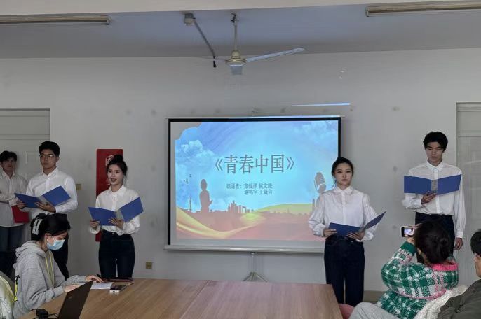 活动中,来自动话朗诵艺术团的同学充分发挥自己的专业特长,将多样的朗诵形式与情景演绎相融合,结合“一二·九”运动发生的基本过程和历史背景,讲述了嘉兴南湖红船上艰难坎坷的建党历程、西南联大学子投笔从戎战斗于“驼峰航线”的方刚之气和“监狱之花”小萝卜头触动人心的顽强精神,带领同学们一同追忆峥嵘岁月,抒发爱国情怀,找寻信仰之光。