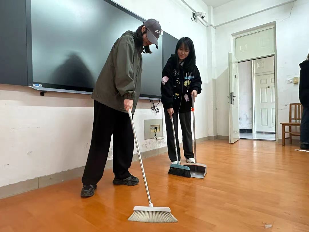 在各班班委的带领下,同学们分工明确、组织有序,以饱满的热情捡拾垃圾、清理路面,同时在各班级教室进行卫生大扫除。戏剧学子秉持“劳动最光荣”的信念,尽情挥洒汗水,以实际行动践行“日行一善”志愿服务精神,展现了当代大学生热爱劳动的良好风貌。