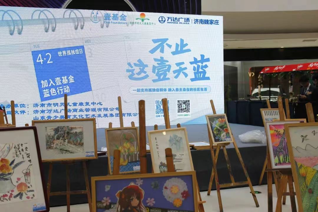 活动中,山东艺术学院“剧先锋”青年志愿者系上代表着社会各界对孤独症儿童鼓励和关怀的蓝色丝带,表演了精心准备的歌曲与朗诵,走进“星星的孩子”们的世界,让“星星”不再孤独,感受爱的陪伴。演出后,志愿者协助工作人员,举办公益绘画展与画作义卖,为孤独症儿童的康复与教育事业贡献出自己的一份力量。
