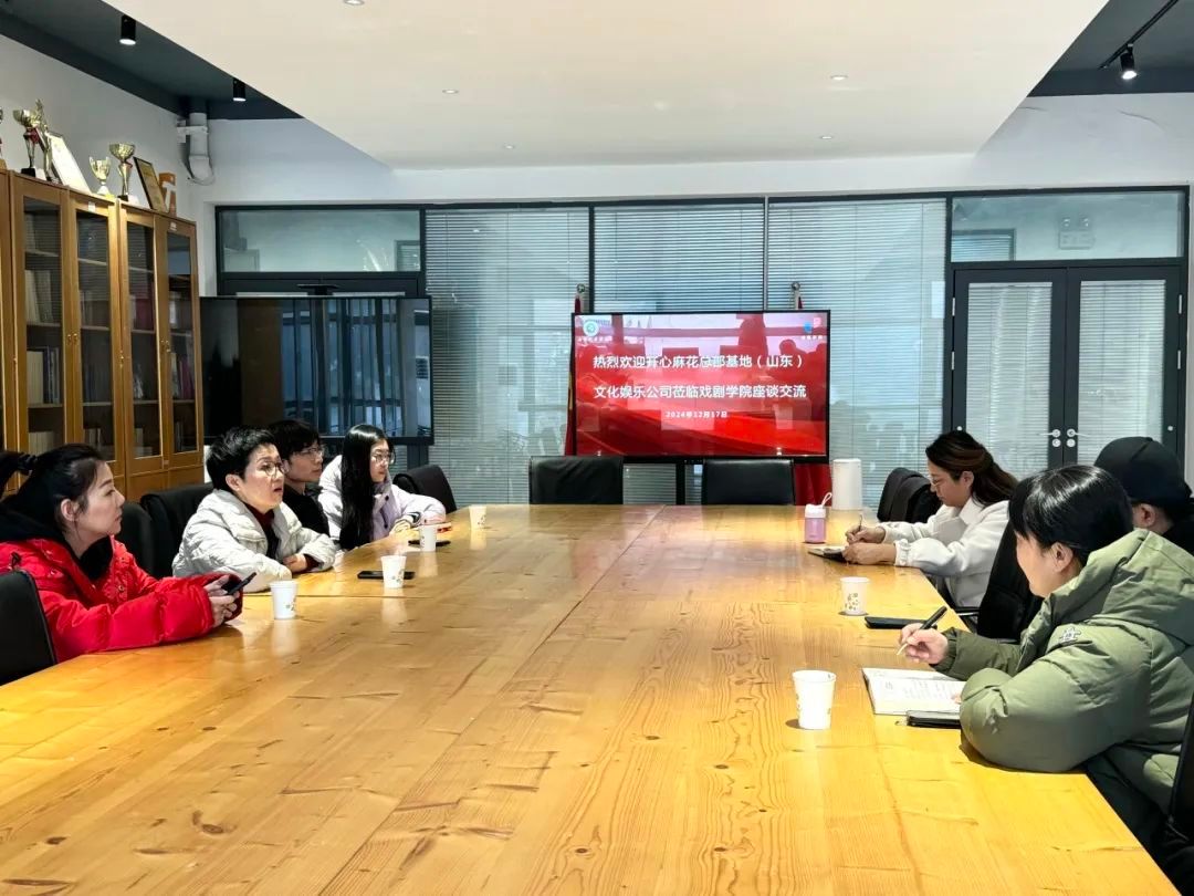 为进一步深化校企合作机制,12月17日,戏剧学院与开心麻花总部基地(山东)文化娱乐有限公司开展座谈交流。开心麻花山东区总经理刘力维、副总经理赵朔、经纪人赵静文、营销总监张杨,山东艺术学院戏剧学院党委书记马其君、院长董亮、副书记柳茜芷和团总支负责人参加交流活动。