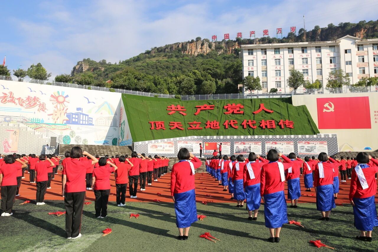 活动中最动人的一幕悄然发生——当非党员学员出列,华坪女高学生转身面向参训党员,肃立敬礼,唱起《不忘初心》。那一刻,在场的所有人无不为之动容,许多人红了眼眶,深刻感受到了作为一名党员肩上的责任与使命。