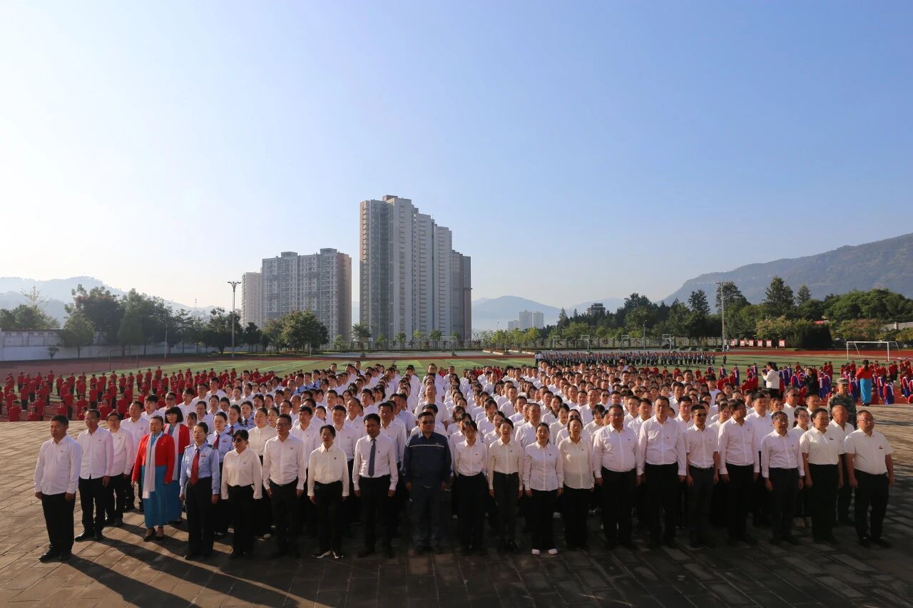 10月27日,晨光熹微,东方既白。我院师生党员、入党积极分子代表一行10人,走进了张桂梅老师用信仰铸就的红色沃土——华坪女子高级中学,参加了华坪女高的党性教育活动,完成了一次特殊的党课学习。迎着朝阳,师生们与来自全国各地的400多名学员整齐列队,以一场军姿站立开启了这次精神之旅,这不仅是对纪律的恪守,更是对意志的淬炼,在静默的坚守中整肃精神,为接下来的深刻体验做好准备。