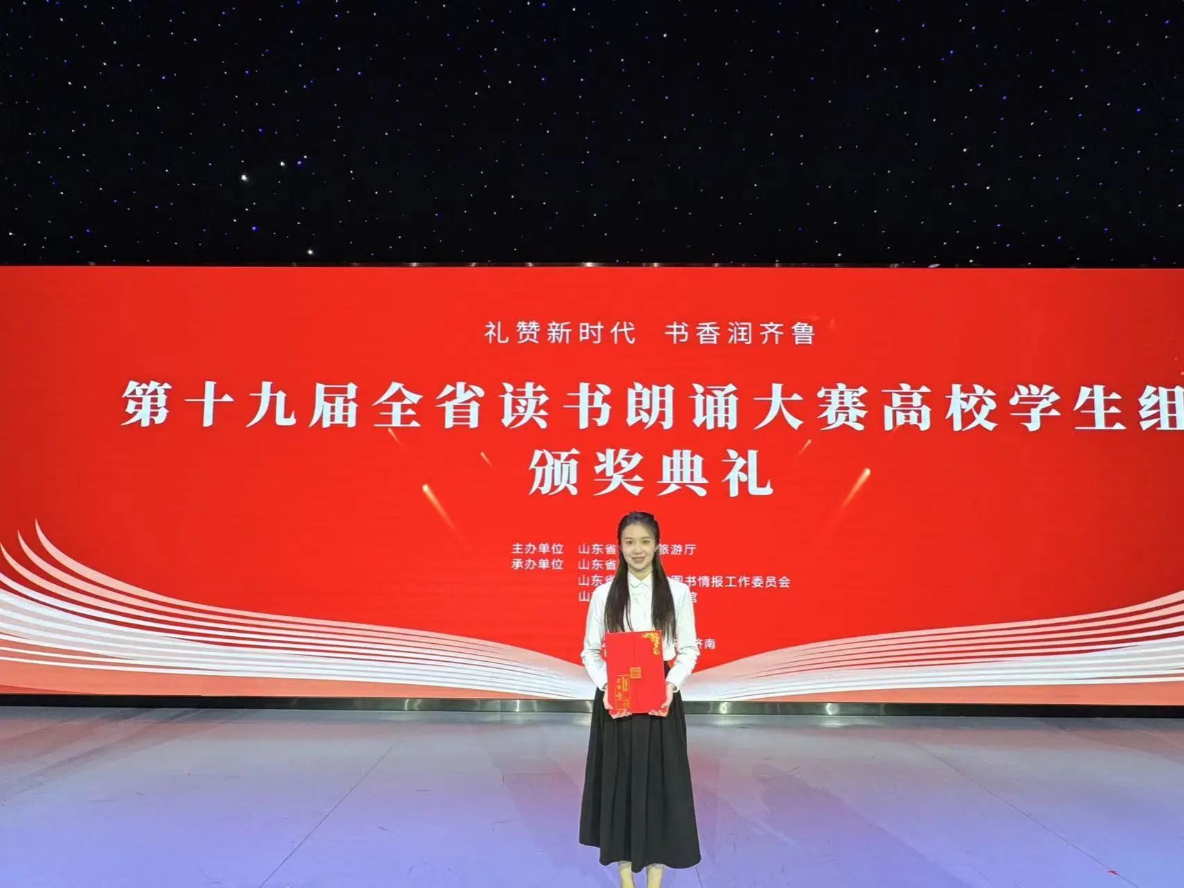 近日,戏剧学子在第八届“爱我国防”山东省大学生主题演讲大赛喜获一等奖,在“礼赞新时代·书香润齐鲁”第十九届全省读书朗诵大赛的高校学生组决赛摘得一等奖和二等奖两个奖项,一起来看看她们的风采吧!