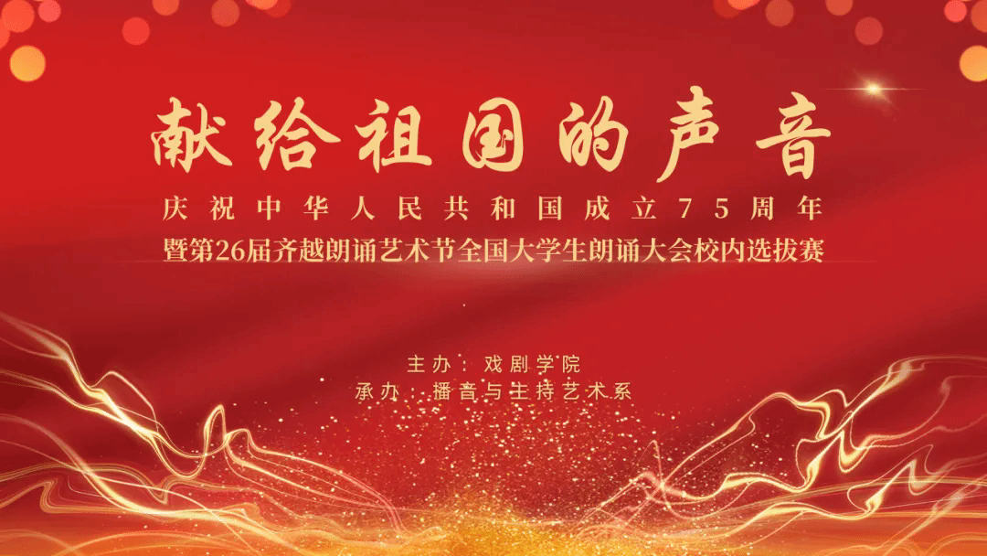为庆祝中华人民共和国成立75周年,进一步强化“以赛促教”“以赛促学”的教学理念,鼓励当代大学生探索有声语言艺术创新表达,10月14日,山东艺术学院戏剧学院举办“献给祖国的声音”朗诵大赛暨第26届齐越朗诵艺术节全国大学生朗诵大会校内选拔赛。本次活动由戏剧学院主办,播音与主持艺术系承办,旨在传承和弘扬中华优秀传统文化,以声音为媒介描绘中华文化的灿烂。