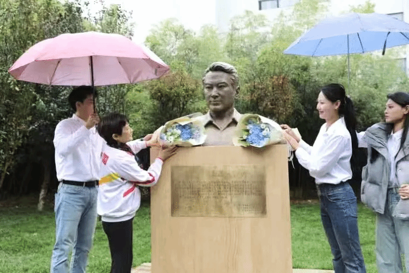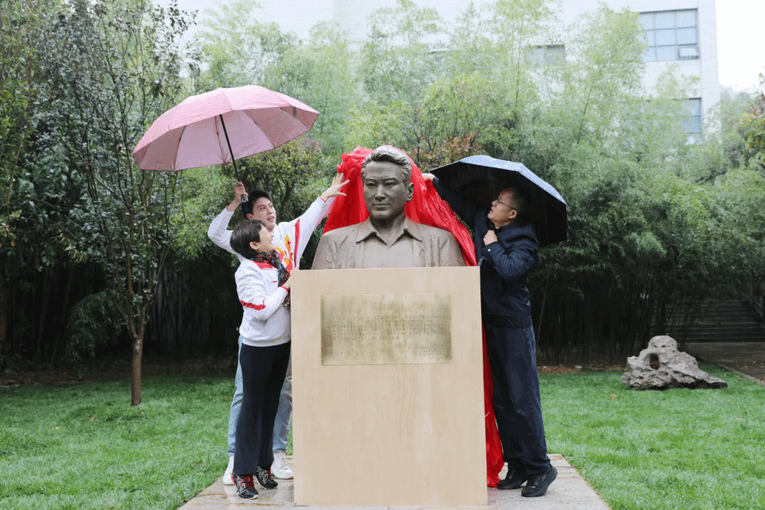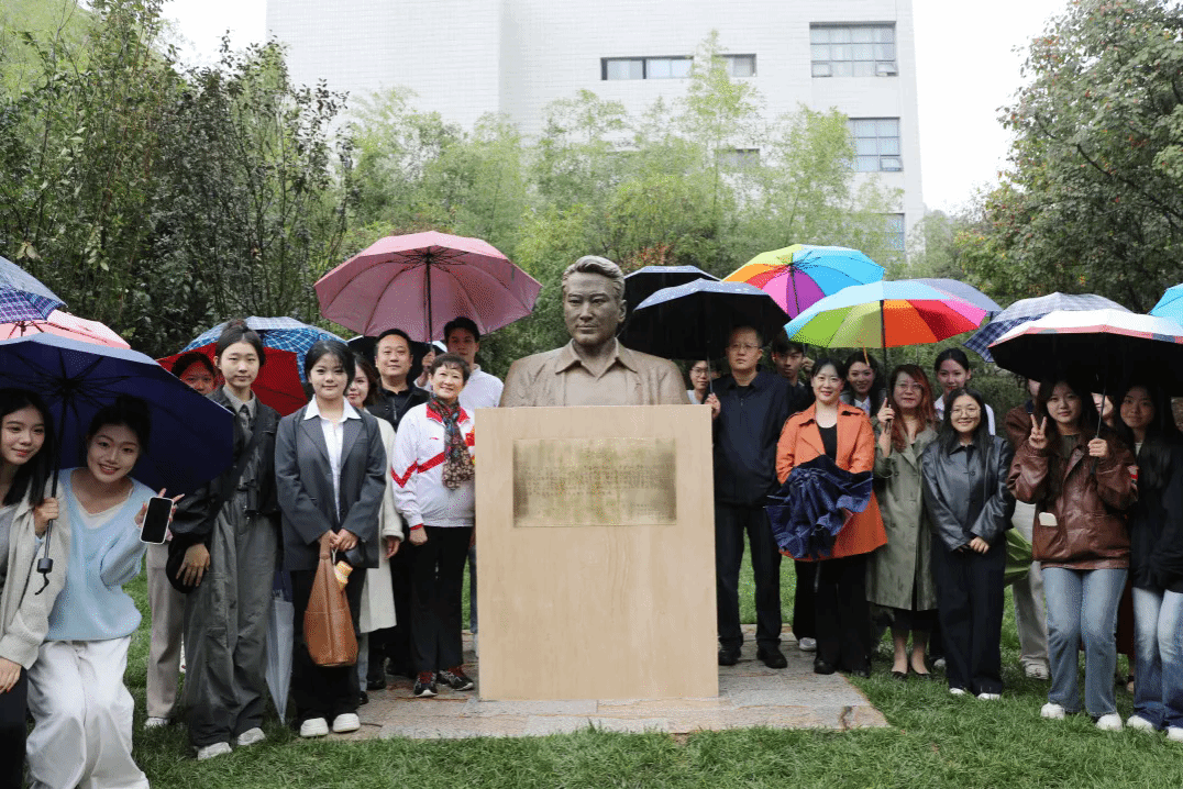 随后,王慧力女士与戏剧学院党委书记马其君共同为项堃先生的雕像揭幕,学生代表为雕像献上鲜花,全体师生共同拍照留念。