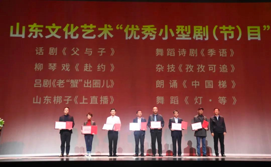 本届文化艺术节共评选出山东文化艺术“优秀剧目”10个、“优秀演员”10个、“优秀小型剧节目”8个、“优秀美术作品”20个、“群众艺术优秀作品”21个。