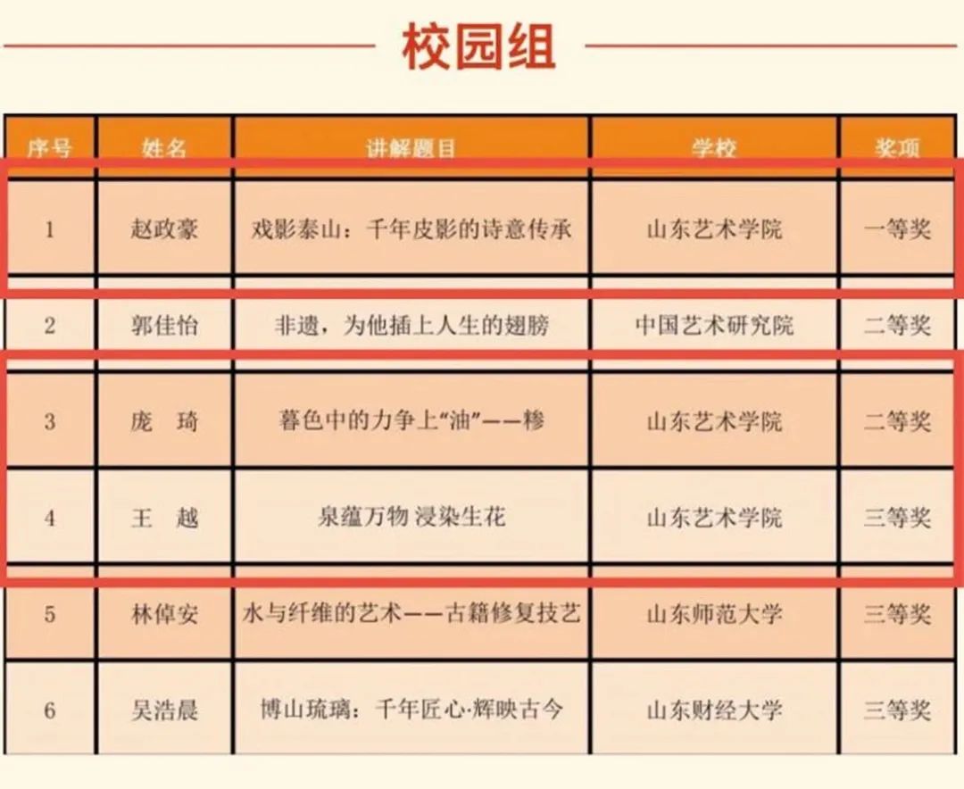 10月27日-28日,由山东省文化和旅游厅主办,泰安市文化和旅游局、山东海岱传统文化研究发展中心承办的“非遗薪传 弦歌有我”2024年山东省非遗讲解员大赛决赛暨颁奖仪式在泰山大剧院成功举办,戏剧学子在本次大赛中斩获佳绩。
