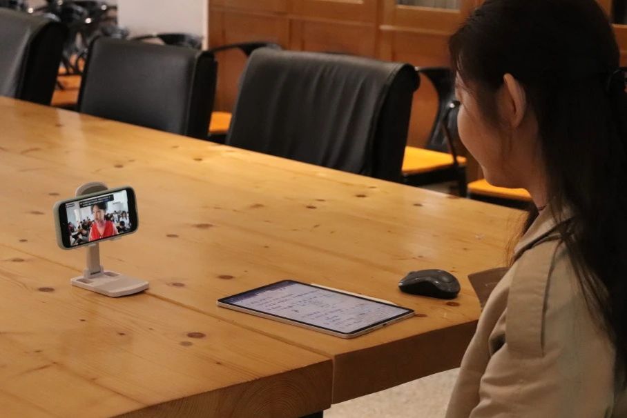 信仰公开课结束后,一场跨越千里的播音课堂在戏剧学院会议室准时开讲,刘芙伶通过线上连线的方式,为重庆山区的孩子们带来了一堂生动有趣的播音课程。
