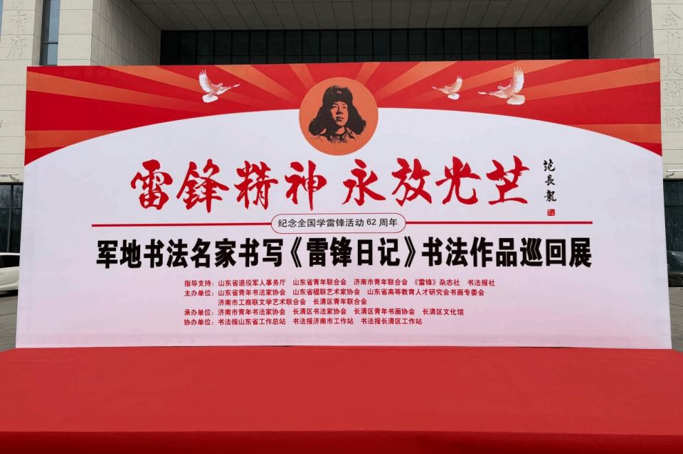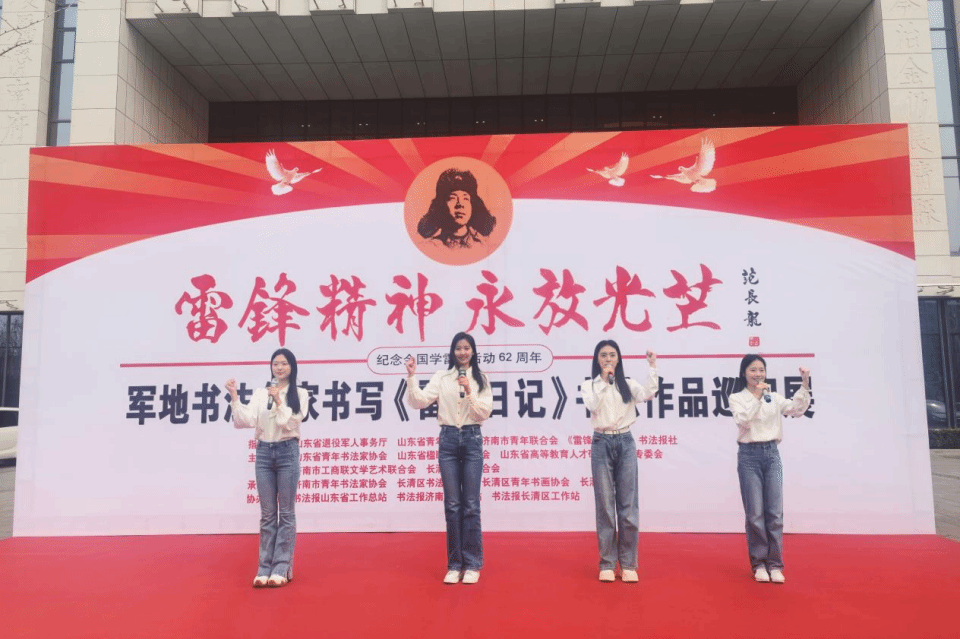 3月7日,山东艺术学院戏剧学院“剧先锋”青年志愿者服务队前往济南市长清区文化馆参加“纪念学雷锋活动62周年书法名家书写《雷锋日记》书法作品巡回展”志愿服务活动。