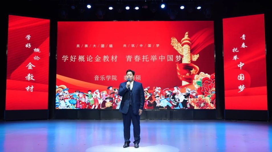 为深入贯彻落实党的二十届三中全会及全国教育大会、全国民族团结进步表彰大会精神,进一步落实习近平总书记关于用好《中华民族共同体概论》等教材的重要指示,引导青年学生树牢正确的中华民族历史观,铸牢中华民族共同体意识,5月16日下午,由山东艺术学院党委宣传部、统战部、学生工作部主办,戏剧学院承办的“学好概论金教材,青春托举中国梦”大学生演讲比赛顺利举行,山东艺术学院党委组织部副部长、正处级组织员张磊,党委宣传部副部长刘霞,党委统战部副部长井燕,马克思主义学院副院长张苓,戏剧学院播音与主持艺术系副教授吴岩担任评委,各学院党委(党总支)统战委员及师生代表参加活动。