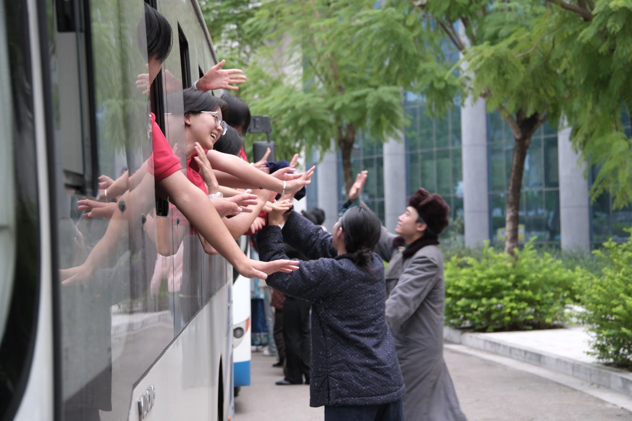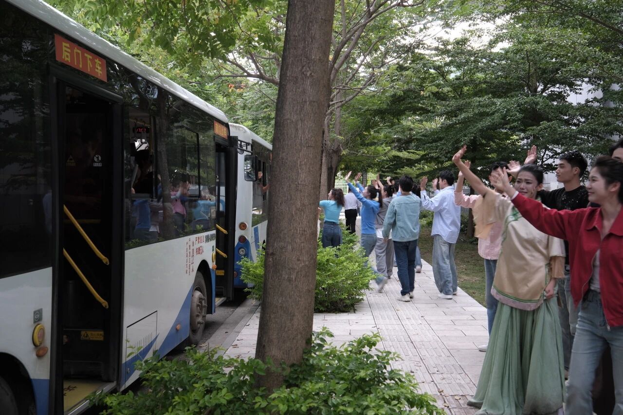 演出落幕,情谊未竟。剧场门外,是道不尽的珍重与不舍,直至华坪女高的学生们登上返程的大巴车,一扇扇车窗内仍探出她们挥舞的手臂,与演职人员深情告别。车辆缓缓启动,戏剧学子再难抑制心中的感动与留恋,他们眼含热泪,情不自禁地随着车辆跑了起来,一路挥手,一路叮咛,直至车尾灯融入远方那片温暖的人间烟火。那一刻,追车的身影与车窗内的挥手,定格为青春永不落幕的永恒记忆,成为烙印在心底最温柔的印记。