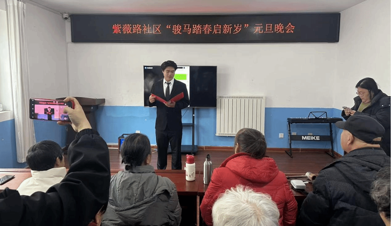 冬日的寒意挡不住欢聚的热情。2025年12月26日,“剧先锋”青年志愿者服务队的同学们走进紫薇路社区,以一场志愿演出,为“与民同乐”元旦晚会添上了浓墨重彩的一笔。